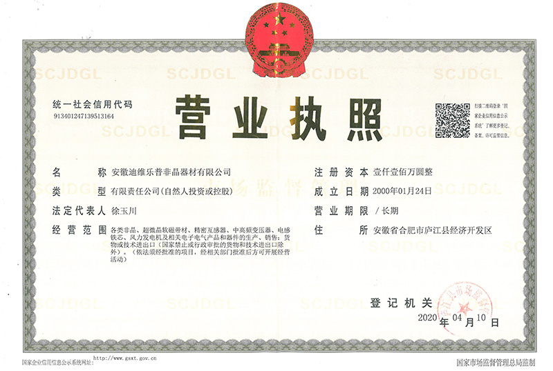 为响应国家标准化发展纲要,推动高质量发展,建设社会主义现代化国家。 安徽迪维乐普非晶器材有限公司、非晶合金电力互感器材料研究中心;为促进标 准化发展、提升标准化水平;实现企业有序发展、有规可循;产品质量有据可依、 方便客户甄别选用,特制定本企业质量标准。